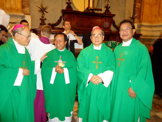 Thánh lễ đồng tế do Đức Giám mục Giuse Võ Đức Minh chủ tế, cùng đồng tế có 2 vị giám mục, Đức TGM Têphanô Nguyễn Như Thể, Đức TGM Gregory Aymond, Tổng Giáo phận New Orleans, Mỹ, và khoảng 15 linh mục người Việt và nước ngoài. Trong số các linh mục người Việt có cha Trần Đình Trọng từ Australia, cha Đỗ Quang Châu, Đức Ông Nguyễn Quang HT72 từ Mỹ, cha Nguyễn Huệ thuộc địa phận Xuân Lộc, cha Nguyễn Quốc Hùng và một số linh mục đang tu nghiệp và phục vụ tại Roma… Thánh lễ được cử hành hoàn toàn bằng tiếng Việt, trong khung cảnh trang nghiêm và sốt sáng.