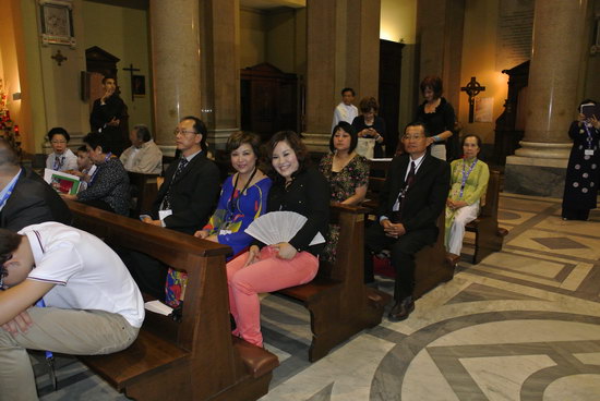 Khu vực này cách khá xa khách sạn lưu trú, nên chúng tôi phải bắt taxi để đến trước khu vực Vương Cung Thánh Đường sớm khoảng 30 phút. Tại đây nhiều khách hành hương người Việt, dù xa lạ nhưng tay bắt mặt mừng, gắn bó như đã từng quen biết từ lâu rồi. Tôi nhận ra 3 phụ nữ lớn tuổi và một cô gái đến từ Hà Nội; một cô gái trẻ nữa đến từ Thụy Sĩ, gặp chúng tôi tại sân bay Fiumicino hỏi thăm tìm người quen biết từ Việt Nam. Trong chuyến bay từ Thái Lan đến Italia, 4 người này ngồi ở dãy giữa, cùng hàng ghế với chúng tôi. Tôi nhận ra họ là người Việt khi họ nói chuyện với nhau, cho đến khi xuống phi trường Fiumicino, chúng tôi mới biết họ cũng đến Roma để tham dự Lễ Kết thúc Hồ sơ án phong Chân phước cho Đức HY PX Nguyễn Văn Thuận. Thế là những đồng hương cùng từ Việt Nam đến vui vẻ chụp hình lưu niệm với nhau.
