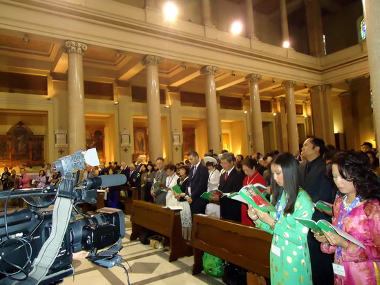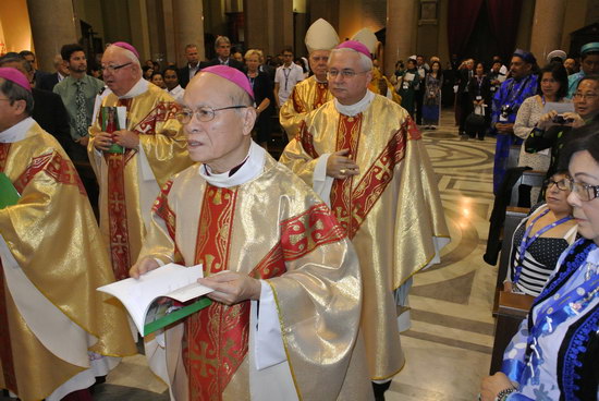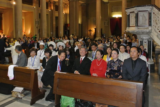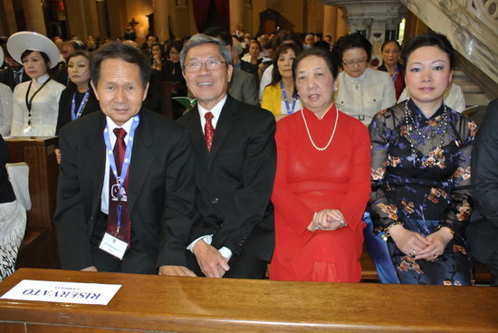 Đoàn dâng lễ vật gồm những người Việt Nam, trong đó chúng tôi nhận thấy có Cụ Hoàng Minh Châu đến từ Huế, Việt Nam. Cụ Hoàng Minh Châu là người bạn cùng thời tiểu học với Đức HY PX Nguyễn Văn Thuận.
