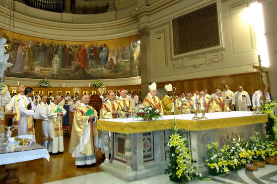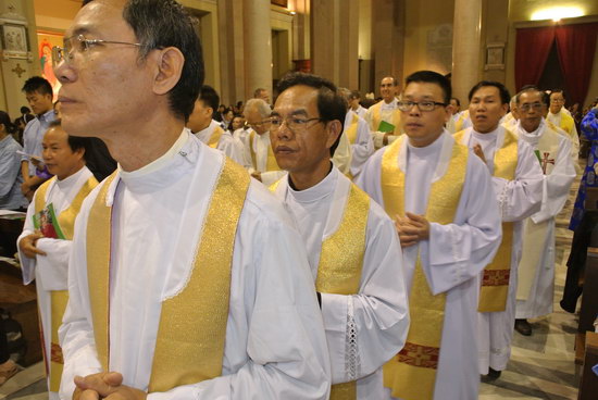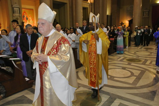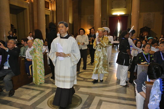 Thánh lễ được cử hành hết sức trang trọng, do Đức HY Peter Turkson, chủ tịch Hội Đồng Giáo Hoàng về Công lý và Hòa Bình chủ tế. Cùng đồng tế có 7 hồng y và giám mục (thay vì 4 như truyền thông đưa tin), trong đó có Đức HY Bernard Law, nguyên TGM giáo phận Boston, Hoa Kỳ, Đức TGM Têphanô Nguyễn Như Thể, ĐGM Giuse Võ Đức Minh và khoảng 40 linh mục người Việt và nước ngoài.
