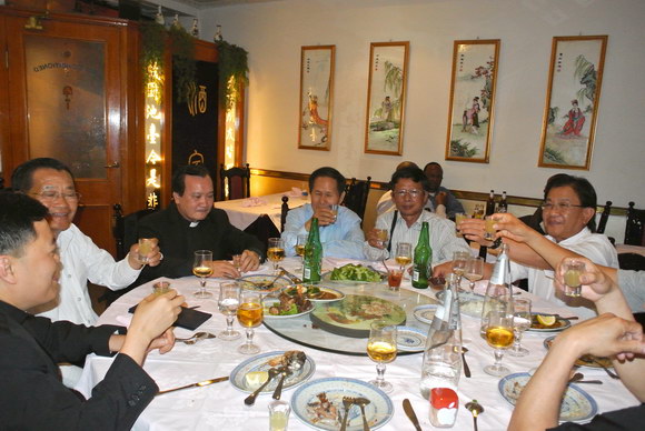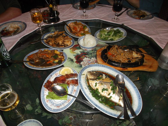 Bữa ăn tối là lúc chúng tôi ăn “chắc bụng” sau một ngày lặn lội mệt nhọc. Thường thì bao giờ cũng có món cơm và các món thuần túy Việt Nam: canh cá, rau cải xào, cá chiên, thịt vịt… Đây cũng là lúc chúng tôi trò chuyện để nhìn lại một ngày qua, chia sẻ những cảm nhận và bàn bạc chương trình cho ngày mai. Vì thế bữa ăn tối của chúng tôi kéo dài đến tận 11g đêm mới về lại khách sạn.