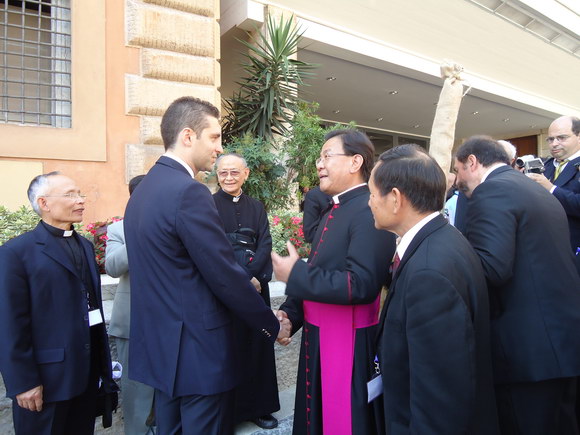 Bà Nguyễn Thị Thu Hồng giới thiệu anh em Cựu Chủng sinh Huế chúng tôi với Cáo Thỉnh viên Án phong Chân phước cho Đức HY PX, Tiến sĩ Waldery Hilgerman, người Hà Lan. Ông chuyện trò thân mật và vui vẻ chụp hình lưu niệm với chúng tôi. Khi anh Nguyễn Cả giới thiệu tôi là người đến từ Việt Nam, ông vội vàng chủ động bắt tay thân mật.