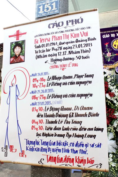 Ban Đại diện CCS Huế phía Nam phúng viếng chị Têrêxa Phan Thị Kim Vui