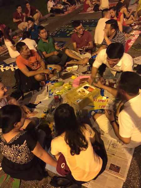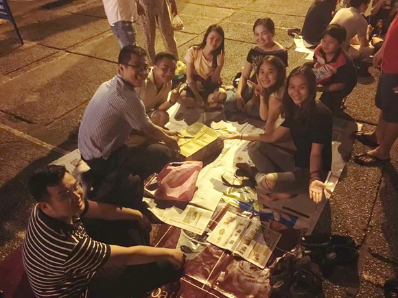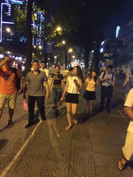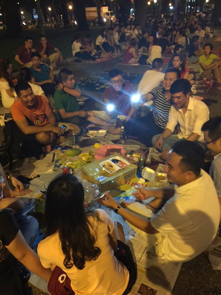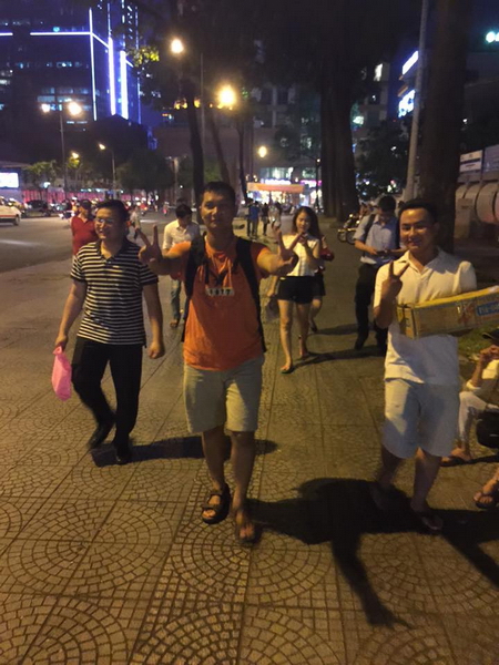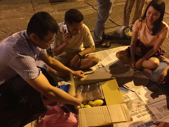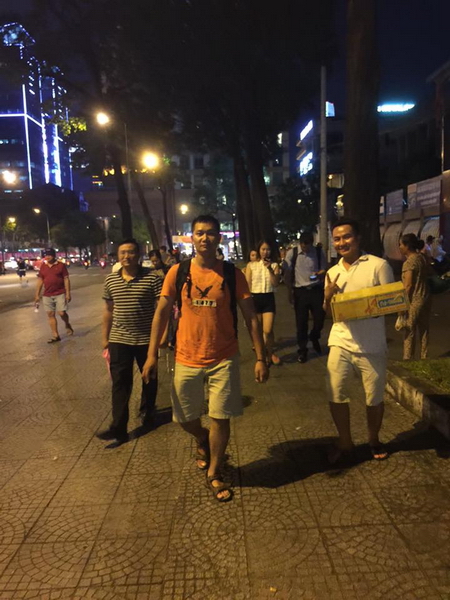 Hẹn nhau vào ngày trăng thanh gió mát, không gian rực rỡ, thời gian không thể ngăn cản, 6h30 anh em chúng tôi tụ họp tại Nhà Thờ Đức Bà. Mong muốn có thể gặp nhiều hơn, đứng chờ đến 7h30 gồm 11 người chúng tôi tí tửng qua cafe Bệt xử thùng Xoài. Người nhọc nhằn nhất đêm nay chính là a Huy, mang thùng xoài đi làm từ sáng sớm, cất ở công ty, tan làm chạy đi học, rồi chạy ra điểm danh coi tụi tui đủ mặt chưa, cuối cùng ngược về công ty ôm hành trang là thùng xoài, khăn giấy, dao,,,, kèm mồ hôi nhễ nhại.