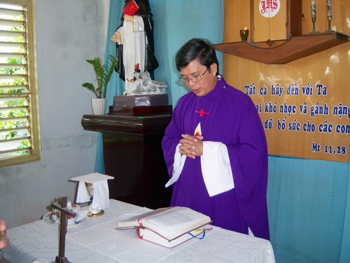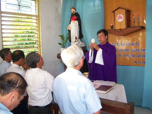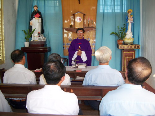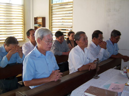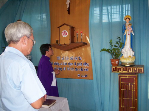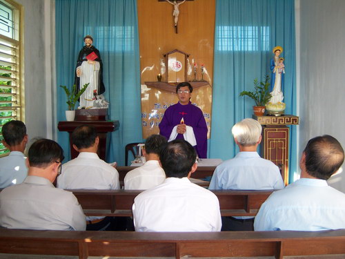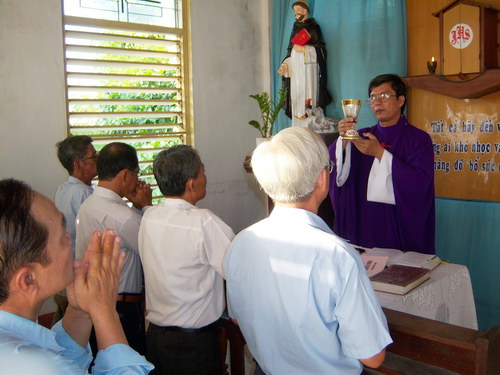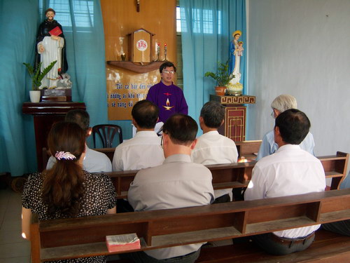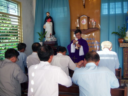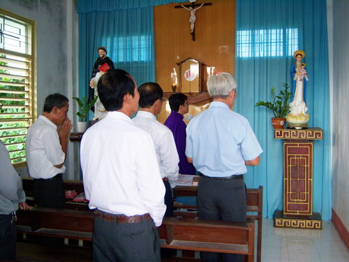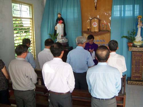 Hình ảnh anh em CCS Huế tại Quảng Thuận cầu nguyện cho Anh Bênêđictô.