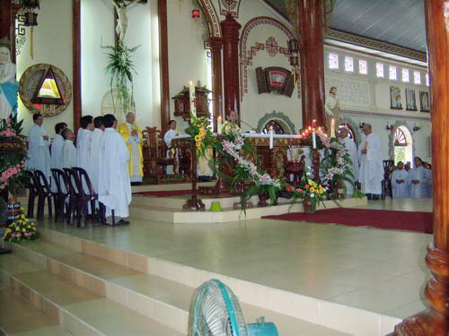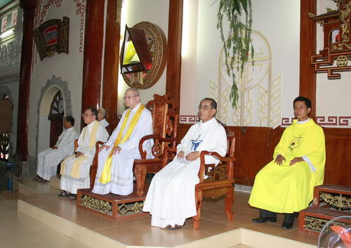 16g chiều Chúa Nhật 29-5, cùng đồng tế với cha Giuse Đỗ Bá Ái là các linh mục con cháu giáo xứ Quảng Thuận, trong đó có cha Hạt trưởng Hạt Ninh Thuận Giuse Võ Quý.