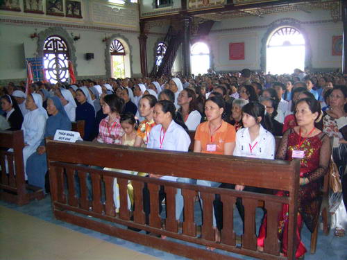 Tu sĩ, giáo dân chật cứng bên trong và bên ngoài nhà thờ.