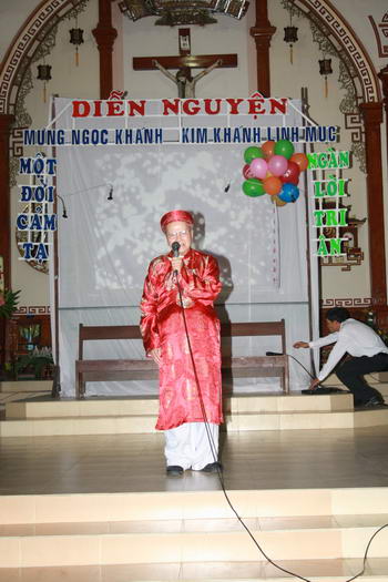Cha Giuse Đỗ Bá Ái trong buổi diễn nguyện. Vào lúc 9g ngày thứ Hai 30-5, Đức Giám mục Giuse Võ Đức Minh đã chủ sự Thánh lễ Đồng tế Tạ ơn. Cùng đồng tế, có khoảng 50 linh mục trong đó đa số thuộc giáo Hạt Ninh Thuận, và một số linh mục gốc giáo phận Huế tại Nha Trang: các Cha Giuse Lê Văn Sỹ, Thomas Trần Văn Hiệu, Inhaxiô Hồ Thông, J.B Nguyễn Vinh.
