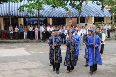 Khởi đầu buổi lễ đoàn nghi lễ niệm hương và đọc văn tế. Với cung giọng khi trầm bổng khi ngân vang của Trần văn Hòa HT 67, bài văn tế đã làm người người xúc động với những lời ca ngợi công đức, gương sáng của người xưa: Tưởng nhớ thánh chủng sinh Tôma Thiên, tuy tuổi đời non trẻ nhưng mạnh mẽ đức tin: “Quyền chức nơi trần thế sá màng chi, vinh phúc thiên đình gì sánh nổi”. Tưởng nhớ Tôi tớ Chúa hồng y Ph.X. Nguyễn Văn Thuận, nhân ngày giỗ lần thứ 9, người làm rạng rỡ quê hương và giáo hội Việt Nam. Thành kính tri ân các giám mục, linh mục giáo sư đã qui tiên, các ngài đêm ngày lao tâm vất vả trong việc đào chủng sinh, trăm năm trồng người. Sau bài văn tế, cộng đoàn phụng vụ lần lượt lên niệm hương trước bàn thờ các đấng, miệng hân hoan khúc ca “ngày vinh phúc hôm nay hát mừng Tôma Thiện …”