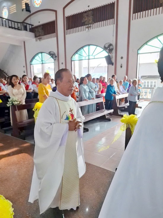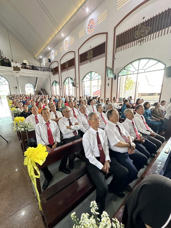 Ngôi thánh đường Vĩnh Phước từ cung thánh cho đến bên dưới và cả bên ngoài đầy người dự lễ. Phía trên có 2 vị Giám mục: Đức cha Giuse Đinh Đức Đạo và Đức cha Đaminh Nguyễn Tuấn Anh, cùng đoàn đồng tế khoảng 50 linh mục. Trong số đó, có cha nghĩa phụ Giuse Trần Văn Lộc, cha Giám đốc ĐCV Huế Giuse Hồ Thứ, cha GB. Nguyễn Vinh, cha sở Gò Muồng Nha Trang, cha PX. Phan Chiếm, cha sở Đaminh, Xuân Lộc, và trên 40 anh chị em Cựu Chủng sinh Huế.