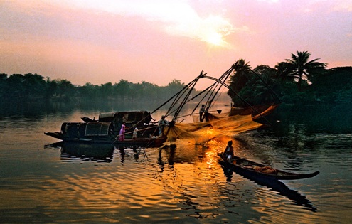 Những chiếc đò nuối đuôi nhau sau một ngày mưu sinh dưới nước.