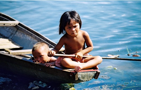 Cư dân vạn đò mùa lũ. Những đứa trẻ được bố mẹ trông coi phòng đuối nước.