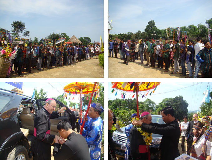 Với anh chị em dân tộc, Đức TGM Leopoldo Girelli đã cám ơn anh chị em đã đón tiếp Ngài với những tiếng cồng chiêng và điệu vũ rất đẹp. Ngài nói khi đến với Kitô giáo, anh chị em rất được đón tiếp và yêu thương, anh chị em hãy bảo tồn và phát huy truyền thống văn hóa đặc sắc của anh chị em.