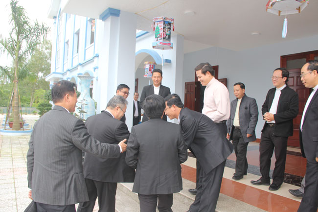 Đoàn đã đến Trung Tâm Hành Hương Đức Mẹ La Vang vào lúc 15g00 ngày 09.01.2017, tại đây tất cả quý Cha và đông đảo giáo dân trong Hạt Quảng Trị đã hiện diện đón tiếp Đức Tân TGM Giuse và phái đoàn trong niềm vui và tràn đầy hân hoan.