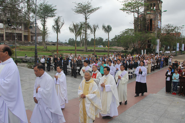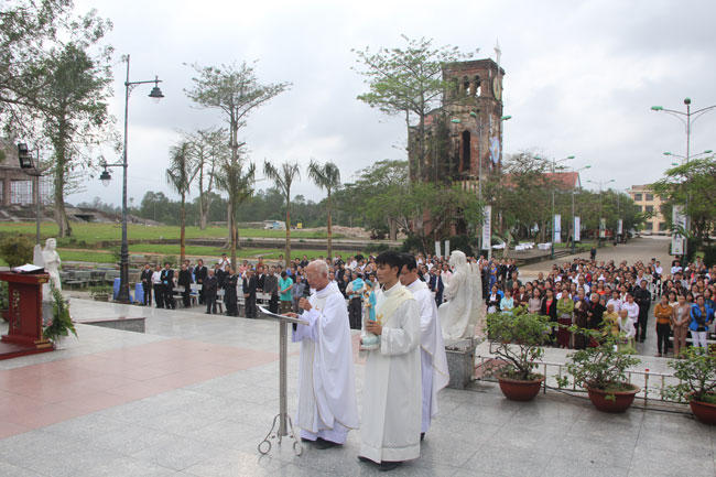 Lúc 15g30, Đức Tân TGM Giuse đã cử hành Thánh lễ với ý nguyện dâng lên Đức Mẹ sứ vụ mới của mình, nguyện xin Mẹ thương ban nâng đỡ trong những ngày tháng sắp đến tại vùng đất mới này. Đồng tế với Đức Tân TGM Giuse còn có sự hiện diện của 65 linh mục thuộc Giáo phận Thanh Hóa theo đoàn và quý Cha trong Hạt Quảng Trị.