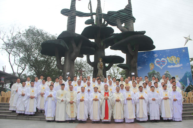 Kết thúc Thánh lễ, Đức Tân TGM Giuse ban phép lành cho mọi người hiện diện, sau đó Ngài cùng chụp hình lưu niệm với quý Cha trước Linh Đài Đức Mẹ. Tiếp đó, phái đoàn tiếp tục lên đường để đi chuyển vào Tòa Tổng Giám Mục Huế.