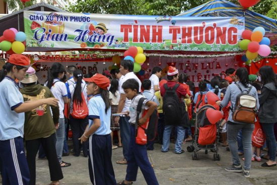 Ngay từ 13 giờ, các nữ tu, thầy cô, người quản lý các cơ sở và mái ấm đã lần lượt đưa các em tới sân TTMV TGP và Đại Chủng viện Thánh Giuse Sài Gòn (ĐCV). Trên 50 cửa hàng ăn, uống, hàng lưu niệm đã sẵn sàng đón các em.