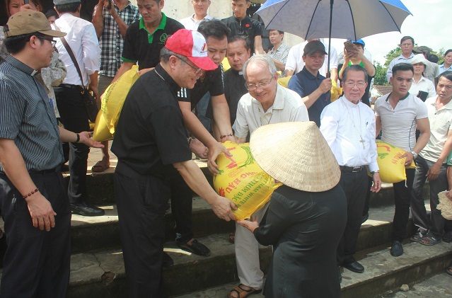 Những ngày này, trên các nẻo đường thuộc 2 tỉnh Hà Tĩnh và Quảng Bình, người ta dễ dàng nhận thấy những chuyến xe nghĩa tình chở những nhu yếu phẩm đến với bà con vũng lũ. Cùng chung niềm thổn thức và sẻ chia những mất mát của những người dân đang phải sống trong cảnh khốn đốn sau cơn lũ lịch sử vừa qua, ngày 26/10/2016, Đại diện Hội Đồng Giám Mục Việt Nam và một số giáo phận miền Bắc đã viếng thăm và trao quà cho bà con vùng lũ lụt tại 2 tỉnh Hà Tĩnh và Quảng Bình.