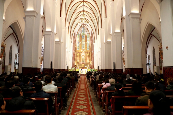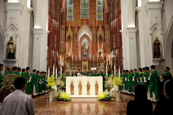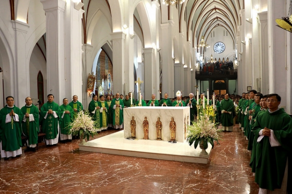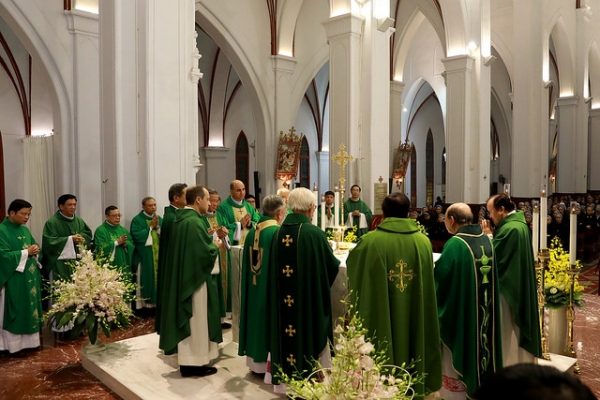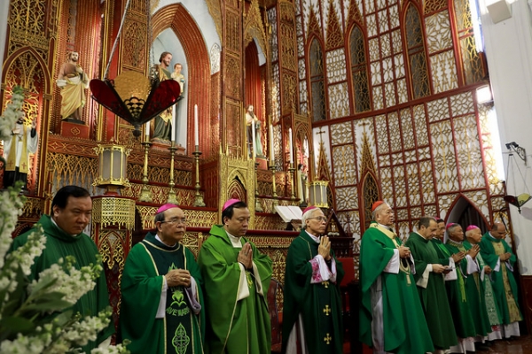 Thánh lễ được cử hành theo phụng vụ trong ngày. Đức Hồng Y Phêrô chủ tế Thánh lễ và chia sẻ Lời Chúa trong Thánh lễ. Cộng đoàn đã hiệp ý cùng cầu nguyện cho công việc của phái đoàn tại Việt Nam đạt được kết quả như lòng Chúa mong ước.