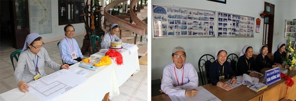 Ban tiếp tân cũng đang niềm nở đón tiếp các Linh mục trong và ngoài Giáo phận về hành hương La Vang. Lúc này khách hành hương về bên Mẹ ngày một đông hơn.