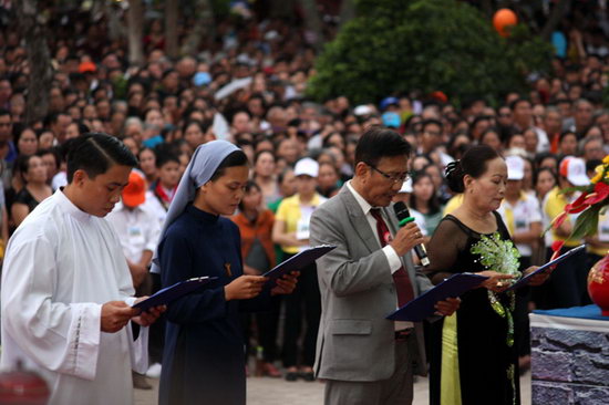 Tiếp đến, cộng đoàn đứng lên và Đức Cha Phaolô nói đôi lời khai mạc Đại Hội La Vang lần thứ 30.
