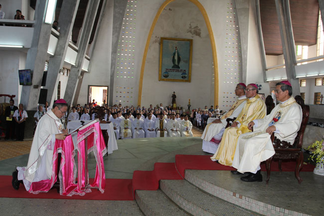 Quý Cha Hạt trưởng, quý Cha bề trên các Dòng Nam, quý Nữ tu Bề trên các Dòng Nữ và đại diện giáo dân trong Giáo phận, cùng tham dự nghi thức thần phục để bày tỏ lòng kính trọng và vâng phục đối với Vị Chủ Chăn mới của Giáo phận.
