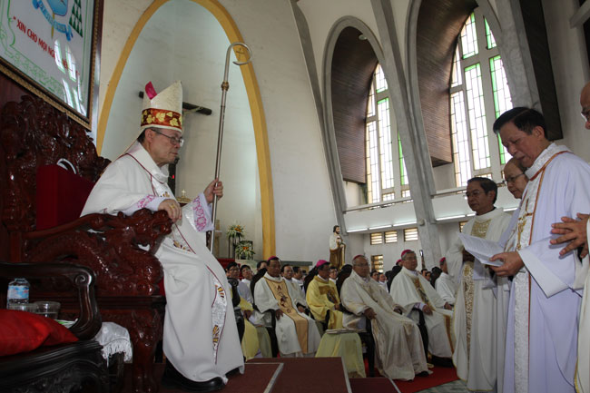 Mở đầu Thánh Lễ, Đức Giám Quản Phanxicô Xavie chào mừng và giới thiệu Đức Tân TGM Giuse với cộng đoàn hiện diện. Trong niềm hân hoan khi giáo phận có được vị Tân Tổng Giám Mục và cũng là Chủ tịch Hội Đồng Giám Mục Việt Nam, tất cả cùng hân hoan vỗ tay chúc mừng cho sự kiện trọng đại này.