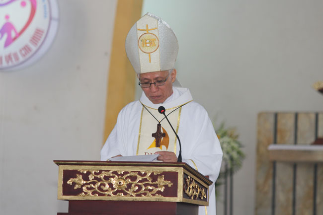 Sau bài Tin Mừng, Đức Cha Cosma Hoàng Văn Đạt, Giám mục Bắc Ninh đã chia sẻ cho mọi người với những điểm chính: tri ân quá khứ, say mê hiện tại và cuối cùng là hy vọng tương lai.