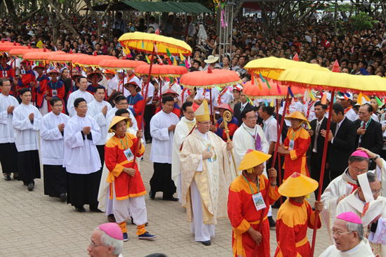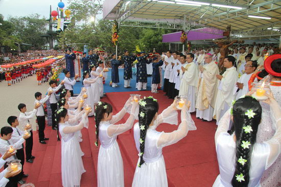 Đúng 17g00 Đoàn rước Đức Tổng Giám Mục Leopoldo Girelli, Đại Diện Đức Thánh Cha, Chủ tế Thánh lễ cùng 15 Giám mục và hơn 230 Linh mục đồng tế.
