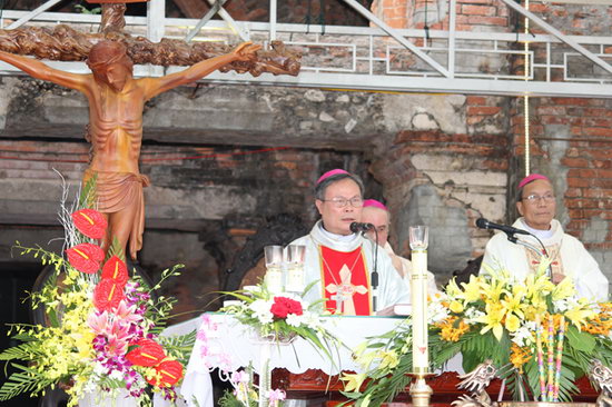 Tôi muốn bày tỏ niềm cảm xúc sâu sắc với Hội Đồng Giám Mục Việt Nam khi quyết tâm xây dựng một ngôi Thánh Đường bề thế ở nơi đây. Hôm nay, dân Chúa xây dựng ngôi đền để Đức Maria là Hòm Bia mới, nơi Thiên Chúa ngự trị. Xin anh chị em cầu nguyện để chúng ta sớm có ngôi Thánh Đường toàn quốc nơi đây.