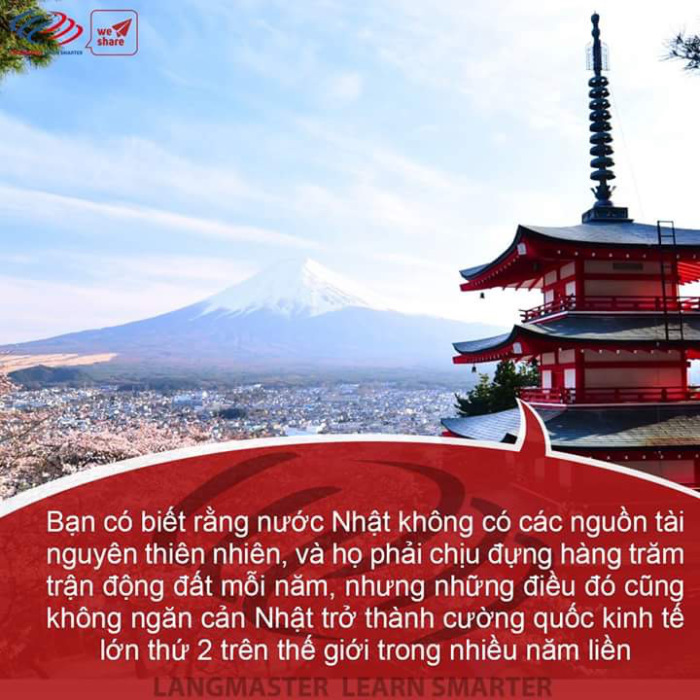 Bạn có biết rằng nước Nhật không có các nguồn tài nguyên thiên nhiên, và họ phải chịu đựng hàng trăm trận động đất mỗi năm, nhưng những điều đó cũng không ngăn cản Nhật trở thành cường quốc kinh tế lớn thứ 2 trên thế giới.