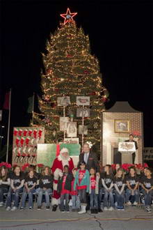 chụp ảnh cùng với các em nhỏ sau khi thắp sáng cây thông Giáng sinh
