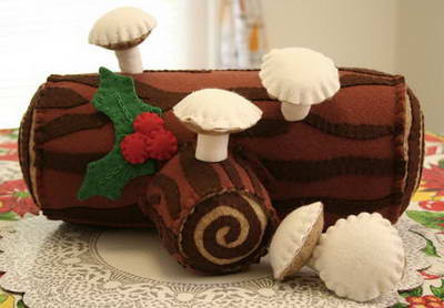 Tiếng Anh là yule log. “Yule” nghĩa là vòng tròn. “Log” là khúc gỗ. Theo cổ tục có từ thế kỷ thứ 7, trong 12 ngày cuối năm, dân Bắc Âu (như Thụy Sĩ…) xếp củi thành vòng tròn nơi sân công cộng rồi đốt lên để xua đuổi ma quỉ. Đến thế kỷ 19, nhà của các tư nhân thường có lò sưởi riêng, vì vậy tục lệ đốt lửa ngoài trời bị mai một. Vào thời Trung cổ, một nhà làm bánh ngưòi Pháp nào đó đã có sáng kiến làm tấm bánh kem có hình dạng khúc gỗ thế vào. Từ đó bánh Buche de Noel trở thành phổ thông. Ý nghĩa trừ tà không còn nữa, bánh gỗ mang ý nghĩa mới là chúc mừng sức khỏe.