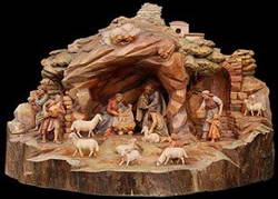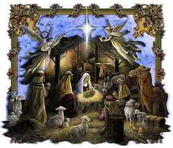Đây là biểu tượng hoàn toàn thuộc tôn giáo nhưng không thể thiếu trong ngày lễ Giáng sinh. Chính vì biến cố này đã xảy ra cách đây 2011 năm mà có lễ Giáng sinh. Người Tây phương (Roman Catholic) thường trình bày hoạt cảnh hài nhi Giêsu nằm trần mình trong cái máng đựng cỏ trong chuồng bò. Đó là biểu tượng Thiên Chúa đơn sơ và sống với người nghèo khó. Tuy nhiên giáo hội Kitô Đông phương (Orthodox Church) đã giải bày biến cố Giáng sinh hướng về thần học cứu độ. Họ trình bày hài nhi Giêsu quấn trong tấm vải màu trắng, nằm trong máng cỏ, và trong một hang đá. Ở Việt Nam, giáo dân có khuynh hướng chọn biểu tượng hang đá. Hang đá rắn chắc sâu tối tượng trưng cho thế gian mê chấp cứng lòng trong tối tăm. Chúa Giêsu đã đi vào thế gian nơi đầy bóng tối và nguội lạnh. Khăn tã trắng bọc hài nhi tượng trưng cho chiếc khăn liệm xác. Khăn liệm và hang đá cũng là dấu chỉ Đức Giêsu sẽ bị giết chết và được an táng trong hang đá. Chiên bò cừu là những thú vật thở hơi ấm cho hài nhi. Đồng thời đàn thú cũng là biểu tượng sinh vật nhận ra hài nhi là Đấng chủ chăn mới. Bởi vì súc vật chỉ đến gần thân mật với chủ của chúng chứ không đi theo người lạ.