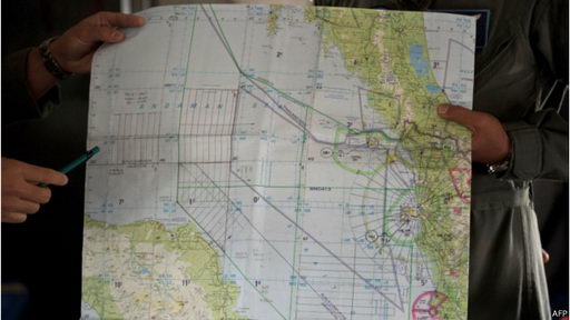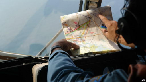 Giới chức Việt Nam chỉ tay vào địa điểm nơi họ đã cử máy bay đến để điều tra lời kể của một nhân chứng rằng anh ta nhìn thấy một vật thể bị cháy cách Vũng Tàu 300km. 13:06 GMT+7 thứ Tư 12-3-2014