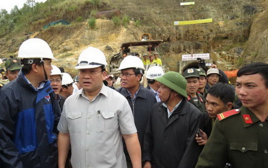 Phó thủ tướng Hoàng Trung Hải kiểm tra, làm việc tại hiện trường cứu nạn - Ảnh: DUY THANH