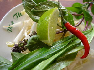 Theo ông bô tôi, điểm dị biệt nhất giữa món Tàu và món Ta là món Ta thường ăn với các loại rau thơm, còn món Tàu không kèm rau thơm. Món Ta thì món nào ăn với rau thơm nấy, tuyệt đối không thể lẫn lộn được. Cho nên ngửi mùi rau tía tô thì tự nhiên thấy thèm các món ốc, ếch, ba ba (cua đinh); ngửi mùi rau kinh giới thì nghĩ đến bún riêu; nhìn thấy rau thìa là thì thèm chả cá, ngửi mùi rau húng giũi thì thèm sách bò, vó bò, bê thui, bò thui (đều chấm tương gừng) v.v... Nay nếu bỏ hầm bà làng các loại rau thơm vào phở thì... “chả còn ra cái quái gì nữa!”