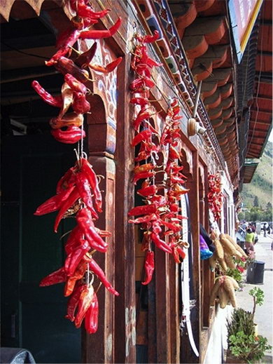 Những tu viện Phật giáo Tây Tạng trầm mặc trong khói hương, thấp thoáng bóng cà sa đỏ thắm của các vị tu hành. Những khung cửa chạm trổ cầu kỳ, treo đầy những chùm ớt chín, lấp ló nụ cười nửa thân thiện, nửa tò mò của các cô bé, cậu bé má đỏ hồng. Những con phố nhỏ, sạch bong và yên tĩnh, được viền bằng những ngôi nhà xinh xắn sơn màu trắng hoặc vàng nhạt. Cảnh vật nhuốm màu thời gian huyễn hoặc như hiện ra từ một quá khứ xa xôi.