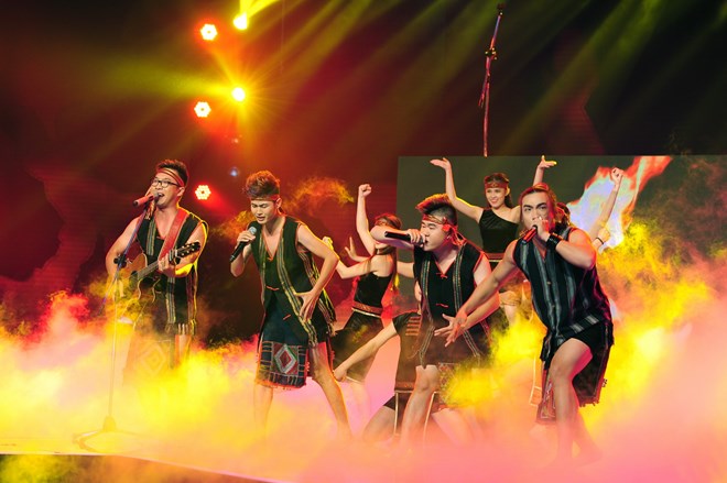 Các thí sinh trong một chương trình dùng khăn Piêu của người dân tộc Thái làm khố của người Tây Nguyên.