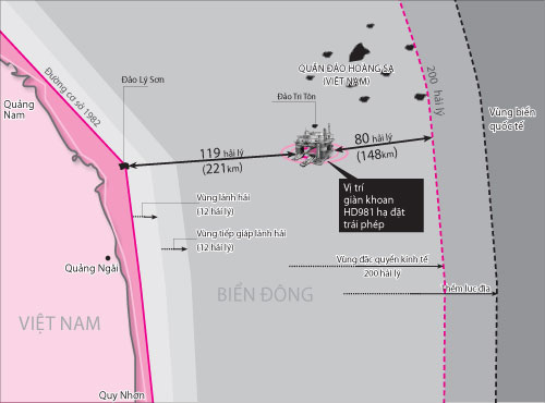Vị trí giàn khoan 981 nằm bên trong đường yêu sách chủ quyền còn được gọi là đường 'lưỡi bò'.