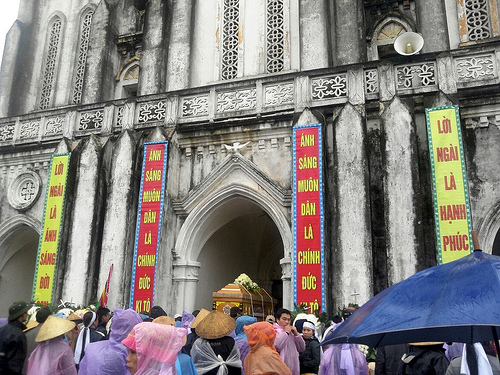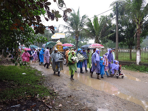 Di quan của hiệp sĩ Phanxico Xavie Nguyễn Công Hùng được an táng tại nghĩa trang giáo họ Chính Tòa Xã Đoài. Nhìn đoàn người di quan giữa thời tiết mưa gió, Ts. Lê Thống Nhất – Giảng viên đại học tại Hà Nội, người đã từng đồng hành với hiệp sĩ Công Hùng đã làm mấy câu thơ tiễn đưa anh: “Ba mươi năm đã dần trôi