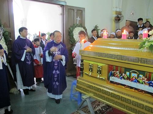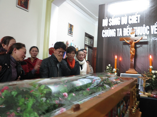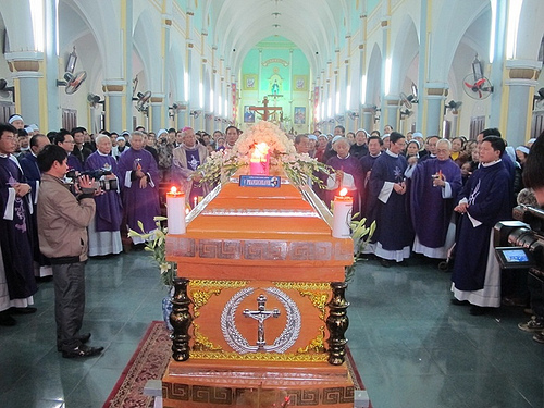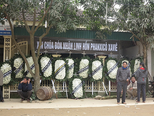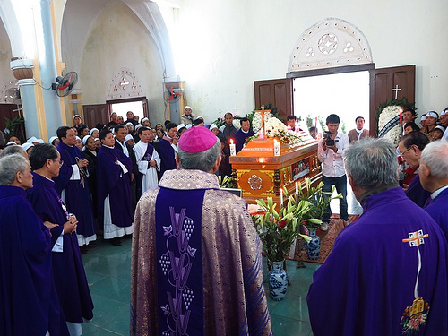 Phần cuối của Thánh lễ là nghi thức tiễn biệt anh Phanxico Xavie, do cha quản hạt chính tòa Xã Đoài Fx. Võ Thanh Tâm cử hành. Giữa cảnh sinh ly tử biệt, Đức Cha Phaolô, cha tổng đại diện cùng quý cha đồng tế đã niệm hương, rảy nước phép tiễn đưa người quá cố về với lòng đất mẹ. Thay mặt cho gia đình tang quyến đã nói lời tri ân Đức Cha, quý cha, quý cộng đoàn hiện diện cũng các cơ quan, đoàn thể, các tổ chức, cá nhân trong và ngoài nước đã gửi lời thăm hỏi, chia sẻ với gia đình trước sự ra đi của của người con, người cháu là anh Phanxico Xavie.