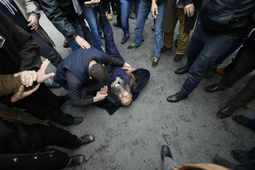 Một người đàn ông bị ngất giữa cuộc biểu tình tại Amman, Jorrdan, phản đối
