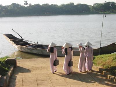 Một màu áo, và cùng một vẻ đẹp. Có lẽ không ai tả màu áo trắng và vẻ đẹp của cô gái Huế độc đáo bằng Hàn Mặc Tử, có thể bởi vậy, mà hình ảnh của thơ ông (thôn Vĩ) đã làm tiêu đề cho cả một tập thơ về Huế. Một gương mặt nhìn không rõ, cả tà áo cũng vậy, thế mà tất cả bóng hình của cô gái Huế đã hiển hiện: