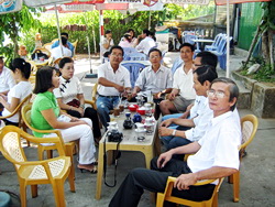 Thế Phong HT67 Có trước thì phải có sau: đã có chuyện tiền trạm thì cũng nên có chuyện hậu trạm, phải không hả anh em? Không đồng ý thì cũng ráng chịu hí! Nao nức ao ước: Tôi theo dõi chuyến đi tiền trạm của trưởng lớp Cương – tâm hồn buồn vui theo những dòng chữ của hắn tả lại chuyến đi: thấm thía cảnh đời của Chiếu và Trương “Bình Phước” Hùng, mường tượng cảnh Viết Hùng đánh đàn tay trái hát cho mấy o du kích, và tai hình như nghe giọng nói của Vũ Quang Hà… Tiền trạm thì vậy đó; còn trạm chính (Hội ngộ HT67) tôi cũng chẳng tham dự được. Biết được chi tiết của chương trình hội ngộ, từ khi các anh em ở Sài-gòn bắt đầu lên đường, tôi kiểm thùng thư điện tử hàng giờ, ao ước được cùng bước anh em trong chuyến về nhà mẹ… Chờ mãi chỉ được một tin ngắn của Cương! Mãi sau đó mới thấy những bài viết của Úy, Hảo, cha Anh, Phương, Cương, Hà, Viết Hùng. Tôi đọc ngấu nghiến mà vẫn còn thèm… thèm còn hơn là người uống càfé ban sáng mà thèm điếu thuốc lá trong cái lạnh của miền cao nguyên. Đã khởi hành: Có thể gọi Huế là địa điểm đầu của hậu trạm. Nơi đó, anh em đã gặp mặt nhau để làm một cuộc hội ngộ Đông-Tây: gia đình HT67 đón chào ngày về của một thành viên từ Pháp: Trần Minh Phước và gia đình. Hình như đó không phải là ngẫu nhiên mà có sự tác động của Chúa Thánh Thần. Đối với tôi, Huế có cái nôi – tiểu chủng viện Hoan Thiện, mà trong đó chúng tôi đã bắt đầu học nghe, nói, nhìn… để chập chững bước vào đời với hành trang cần thiết cho cuộc sống. Hậu trạm mang thật nhiều ý nghĩa khi được khởi hành từ cái nôi đó – dường như là muốn tạo một cơ hội để nhắc nhở tôi ôn lại hành trình đời mình. Có chút ngạc nhiên: Trưa 18/8, vừa xuống phi trường Tân Sơn Nhất, tôi nhớ ngay lời dặn dò của Viết Hùng: “Nhớ gọi điện cho tui để tui chạy ra gặp ông, nhà tui gần phi trường mà”. Không gọi điện thoại ngay cho hắn được vì phải đi thăm đứa cháu đang nằm ở một bệnh viện nhi đồng. Tuy nhiên, khi ghé vào nhà sách Đức Mẹ Hằng Cứu Giúp, tôi gọi điện thoại cho Viết Hùng. Hắn chạy tới… hai anh em tay bắt mặt mừng. Tôi cảm nhận có chút ngạc nhiên trong mắt hắn. “Phong thay đổi nhiều”, hắn nói. Câu nói đó làm tôi nhớ lại lần gặp cha Dung ở Missouri, Mỹ. Khi vừa gặp mặt, cha Dung lặp đi lặp lại, “Phong đây hả? Phong đây hả!”. Hùng và tôi dành nhau nói chuyện để chuẩn bị cho ngày 20/8. Minh Phước đã có hẹn gặp với anh em vào ngày đó. Tôi chia tay với Hùng mà lòng nao nức gặp lại. Trên xe về nhà mạ ở Xuyên Mộc, tôi kể chuyện cho mạ, chị và em gái những chuyện của “anh em chúng mình”. Tôi nói với mạ là phải lên gặp anh em vào ngày 20/8. Mạ cười với vẻ an tâm – khác với những lần trước mà mạ thường lo cho cái thằng nhà quê lên Sàigòn. Gia đình cũng cho tôi biết là sẽ đi Bù-Đăng để thăm gia đình cô em gái vào ngày 25/8. Tôi nghĩ ngay đến Trương Hùng ở Bình Phước với dự định sẽ liên lạc với hắn để ghé thăm. Hơi chút lắng lo: Ngay tối hôm đó, tôi gọi ngay cho J. Lộc. Lộc ở cách nhà mạ chừng 20 cây số. Hai đứa hẹn gặp nhau ở bến xe Bà-Tô vào sáng 20/8. Hắn thiệt thà quá. Tối 19/8, Lộc gọi điện thoại cho biết là muốn đến gặp tôi vào tối hôm đó nhưng hắn bận rộn quá. Hắn sợ ngày mai không nhận diện được nhau. Tôi nói, “Đừng có lo quá. Dù ông không nhận ra tui, tui sẽ nhận ra ông.” Ra đến xe, Lộc và tôi nhận ra nhau ngay: cám ơn internet và những tấm hình mà anh em đã gởi lên mạng trước. Trên đường về Sàigòn Lộc kể cho tôi nghe chuyến về Huế. Anh em tâm sự rất nhiều, kể cả chuyện tôi thay đổi “thân xác”. Tôi nói đùa, “Hồi chừ đã rõ ràng rồi phải không? Phong “đen” chính cống chứ không phải đồ giả hè. Lên trên đó có đứa mô còn nghi ngờ thì ông làm chứng cho tui nghe!” Tô mì tình nghĩa: Lộc và tôi đến nhà Viết Hùng vào khoảng sau 1 giờ 20 chiều. Hùng và gia đình đã ăn trưa nên anh em không ra ngoài ăn. Nhìn thái độ chị Xuyến vui vẻ tiếp đón và nhanh nhẹn nấu mì cho Lộc và tôi ăn, tôi nghĩ thầm trong lòng: “Thằng Cương nhận định hay quá!” Nghĩ sao nói vậy. Tôi nói với hai vợ chồng Hùng: “Thằng Cương đúng quá! Đúng là nhà nhỏ nhưng mà trái tim lớn.” Hùng cho biết chương trình không có gì thay đổi. Hôm qua Hùng cũng đã có nói với tôi là Trương Hùng cũng có mặt; Lê Văn Hồng sẽ về từ Đồng Tháp. Thật là một ngạc nhiên đáng quý. Tôi cứ tưởng là chỉ có anh em ở Sàigòn mà thôi. Tràn đầy hạnh phúc: