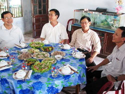 Phần 2: Tâm sự “dài” - Hậu trạm Hội Ngộ HT67: Bình Phước – Huế - Sàigòn 2 Nén nhang Bình Phước: Ngày 25/8/2009, trên đường lên Bù-Đăng thăm gia đình em gái tôi, đến Tân Uyên, tôi gọi điện thoại cho Trương Hùng nhưng không liên lạc được. Khoảng mười lăm phút sau, hắn gọi lại. Thì ra hắn vừa đi bộ tập thể dục xong. Tôi cho hắn biết là trên chuyến về mới ghé được vì mạ muốn đến Bù-Đăng sớm. Hắn nói là nhà hắn ở kế bên đường, ghé uống càfé cho biết nhà rồi đi. Thấy hắn vồn vã nhiệt tình quá, đành năn nỉ mạ để ghé ngang nhà hắn. Gần đến chợ Tân Tiến, Hùng lại gọi điện thoại để chỉ đường đến nhà hắn. Đến nơi, đã thấy hắn đứng ở bên đường đợi xe. Nhà Hùng rất ngăn nắp sạch sẽ. Hùng chỉ cho tôi hình của chị Nga (vợ Hùng) và nói: “Thắp cho bả một nén nhang.” Vừa cắm nhang tôi vừa nguyện xin Chúa là Cha từ nhân, đưa linh hồn Cêcilia về hưởng nhan thánh Ngài. Trước khi chia tay, hắn còn nắm tay nhắc nhở: “Trên chuyến về nhớ ghé hí… ăn bữa cơm rồi đi tiếp!” Khoảng 2 giờ chiều hôm sau, sau khi dự tiệc thôi nôi của đứa cháu nội của chị tôi, tôi gọi điện cho Hùng để cho biết là sẽ ghé lại nhưng chỉ uống ly càfé thôi vì đã lỡ bữa. Sắp đến Tân Tiến, hắn gọi điện thoại để hỏi cho biết đã đến đâu. Đến nơi cũng lại thấy hắn đứng bên đường chờ, vẫn vồn vã nhiệt tình. Tôi vào thắp một nén nhang cho chị Nga, mạ và chị tôi cũng xin được thắp nhang. Không biết mạ và chị cầu xin điều gì nhưng tôi biết chắc là mạ và chị thấu hiểu được hoàn cảnh thiếu đi một người trụ cột (cha hay mẹ) trong gia đình (ba tôi mất vào năm 1966). Tôi còn nhớ rõ, sau khi rời khỏi Tiểu Chủng Viện, tôi về ở với mạ và chị em ở Nam Đồng, Vũng Tàu. Nhà nghèo lắm; mạ và chị phải nuôi bảy miệng ăn mà việc làm thì quá vất vả mà tiền lương lại ít ỏi. Sau khi đi học về, anh em tôi xuống bếp, nếu thấy bếp núc lạnh tanh thì biết hôm nay nhà hết tiền mà cũng hết thức ăn. Vậy là uống nước cầm hơi rồi lên giường ngủ thay ăn. Tối thức dậy cũng đàn ghi-ta, cũng hát, cũng cười cười nói nói tỉnh bơ vì sợ mạ buồn. Anh em từ đứa nhỏ (8 tuổi) cho đến đứa lớn nhìn nhau đồng cảm – chẳng có đứa nào mở miệng than đói. Rất nhiều lần tôi thấy mạ và chị khóc thầm… nhưng vì chẳng biết phải nói gì, nên cứ làm như không nhìn thấy gì cả. Tôi cũng đã xin khéo với mạ để nghỉ học, đi làm giúp gia đình nhưng bị mạ rầy nên đành chờ lần sau… Trước khi rời nhà Hùng, hắn đưa cho cặp gà nói là để biếu mạ. Mạ rất ngại nhận quà biếu của ai nhưng lần này mạ lại vui vẻ nhận; có lẽ mạ đã nhận được cái lòng thành của hắn như thế nào. Tôi hỏi hắn: “Gà thì nhận rồi còn cái giỏ nhốt gà thì làm răng hè?”. Hắn cười, trả lời tỉnh bơ: “Biếu luôn cái giỏ.” Tôi có đọc bài của Cương “móm” viết về Hùng và đặt cho hắn cái tên hay hay: Trương Bình Phước. Cương có nhắc đến cách sống lạc quan của Hùng. Khi gặp Hùng, nhìn phong cách nói cười của hắn tôi mới cảm nghiệm sâu sắc được cái ý nghĩa của chữ “lạc quan” được dùng trong bài viết của trưởng lớp Cương. Hùng đã thực hiện được phương cách sống mà tôi đang cố gắng noi theo. Một nhà khôn ngoan nào đó đã khuyên - đại khái như sau: khi ta đối diện với những khó khăn trong cuộc sống, ta có 3 cách “giải quyết” như sau: (1) đối những khó khăn có thể vượt qua được thì làm ngay; đừng phung phí thời gian để than phiền – tự trách, (2) đối với những khó khăn mà ta không có khả năng để giải quyết thì ta cầu xin Chúa ban cho ta sức mạnh để chịu đựng; đừng phung phí thời gian để than phiền – tự trách, và (3) xin Chúa ban cho ta ơn khôn ngoan để ta sáng suốt phân biệt được giữa (1) và (2) nói trên. “Đại ca” Trương Hùng đã và đang thực hiện phương cách sống như trên. Còn tôi, tôi vẫn còn đang hì hục cố gắng – như mấy võ sinh vừa mới nhập môn, chỉ mới được gánh nước; chứ chưa được đứng vào sân tập như mấy “sư huynh” khác. Chương trình có chút thay đổi: Từ Bình Phước về Xuyên Mộc, chúng tôi ghé qua Sàigòn ăn cơm tối. Đang ăn tối thì nhận được điện thoại của Hà bàn về chuyện thay đổi chương trình đi Huế. Vì nhiều lý do khác nhau, tôi không có ý định đi Huế. Tuy nhiên, sau khi nói chuyện với Cương, với Minh Phước, với cha Anh (cha Anh vẫn còn nhớ thằng Phong chuyên đọc lén kiếm hiệp trong nhà vệ sinh! Nếu hồi đó có đứa nào xấu miệng đặt cho cái tên “Phong vệ sinh” thì cũng chịu thôi), và với Hồng Ngọc (vợ tôi) ở Canada, tôi đổi ý. Tôi liên lạc với Hà để nhờ mua hộ vé máy bay ra Huế vì Hà có tài khoản với hãng hng không. Tôi dự định sau khi gặp gỡ bạn bè nhạc sĩ thánh ca ở Sàigòn vào tối 29/8, gặp anh em HT67 ở Sàigòn vào trưa 30/8, ra Huế vào chiều 30/8, và về lại Xuyê