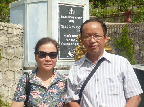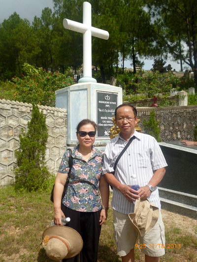 Từ giã An Vân, chúng tôi đi tham quan chùa Thiên Mụ, tại đây rất vui khi được gặp lại anh chị Thanh Trâm, không biết ông bà đi lang thang du hí nơi nào mà bây giờ mới tới, như vậy là đầy đủ cả rồi. Rời Chùa Thiên Mụ chúng tôi trở về Tòa Tổng Giám Mục để được gặp gỡ, diện kiến Đức Tổng Giám Mục Giáo Phận Huế. Trong tình cảm Cha con, Ngài đã thăm hỏi, nói chuyện thân mật, chúng tôi được chụp hình chung với Ngài để làm kỷ niệm.