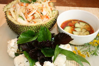 Trái mít già cũng gọi là mít non, mới lạ. được chế biến những món như luộc chấm nước ruốc ngạ gừng, hoặc với mắm nêm.