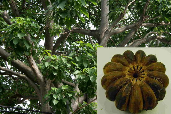 Cây Ngô đồng đang ra hoa trong công viên Tứ Tượng (chụp ngày 15/5/2011)