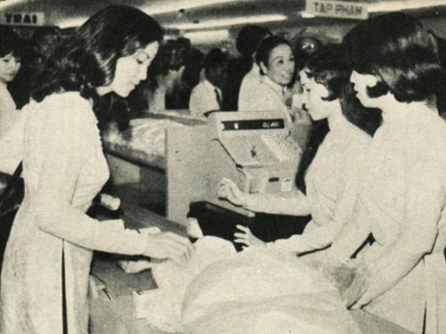 Diễn viên điện ảnh Kiều Chinh đến mua hàng tại siêu thị Nguyễn Du trước 1975 - Ảnh: Tư liệu